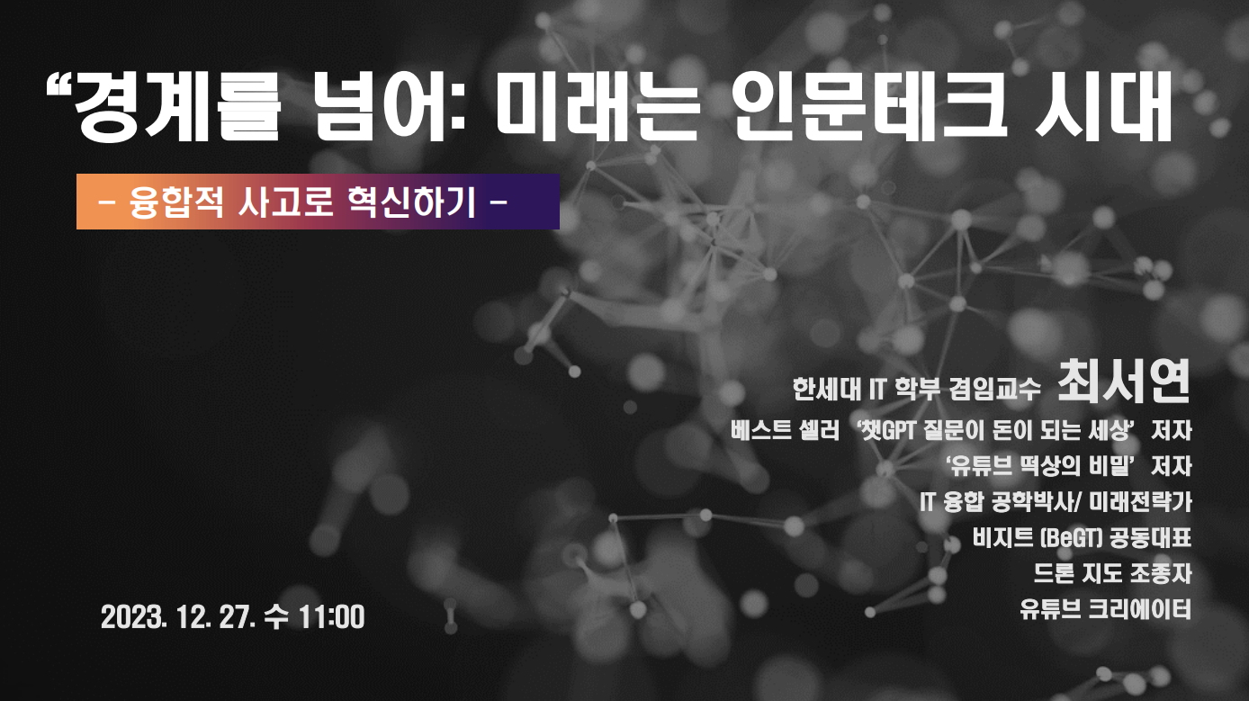 최서연 박사는 '경계를 넘어: 미래는 인문 테크 시대, 융합적 사고로 혁신하기' 를 강연했습니다.