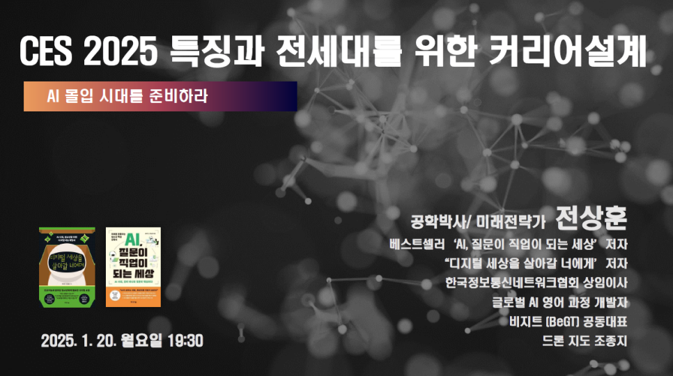 이번 강연에서 전박사는 CES 2025가 더 이상 단순한 전자제품 전시회가 아니라, 이제는 세계 최대 규모의 ICT 융합 전시회로 자리 잡았으며 특히 AI 기술의 혁신적 변화가 불러올 직업 환경 변화와 기회에 대한 통찰을 가져야 한다는 것을 강조했습니다.