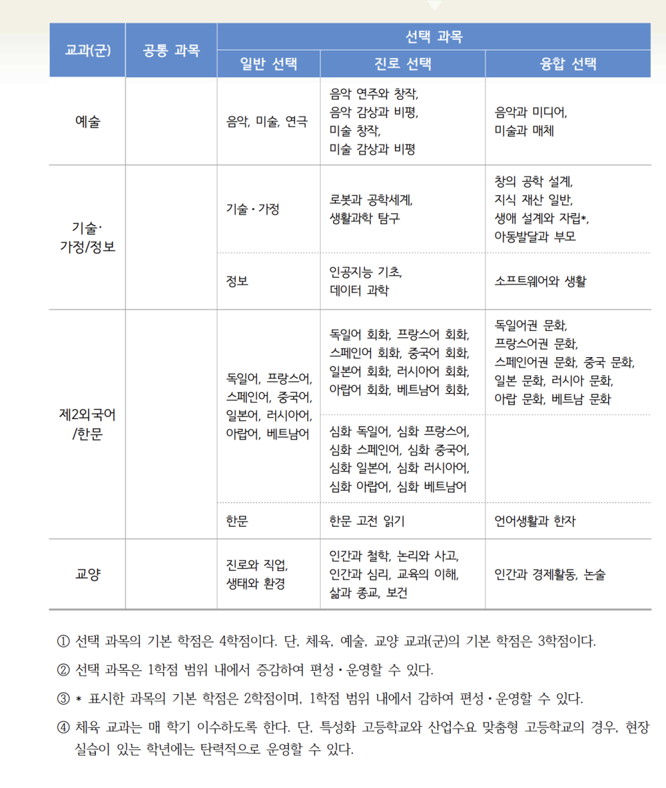 셋째, 글로벌 교육 파도를 타기 위함한 처절한 몸부림입니다. 이미 여러 선진국에서 학생 선택형 교육과정을 운영해 오고 있고, 시대에 뒤처진 우리 교육 방식을 혁신해야 한다는 요구가 지속적으로 터져 나왔죠. 그래서 2022년 개정 교육과정에 따라 연구학교 운영을 거쳐 오는 2025년에 전국 시행이 되는 것입니다. 그래서 이 고교학점제는 학생의 선택을 얼마나 학교와 교육당국이 서포트할 수 있느냐가 성공 여부의 핵심으로 볼 수 있습니다.