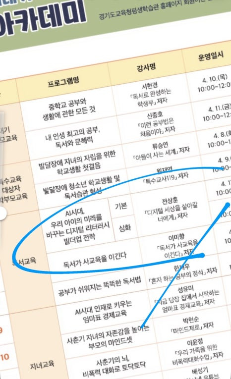 전상훈 박사는 오는 4우러 17일과 18일 경기도 교육청 광주 도서관에서 중학생 학부모를 대상으로 줌 강연을 하게 됩니다.이번 특강은2025년 새내기 학부모 독서 아카데미 운영의 일환으로 진행되는 경기도교육청공동도서관의 공동 사업 행사입니다.
