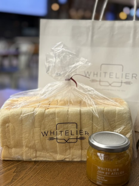 화이트리에 양주 옥정점의 내부는 작지만 깔끔하고 위생적으로 관리되어 있었습니다. 매장에 들어서는 순간 갓 구운 식빵의 풍부한 향이 기분 좋게 퍼졌고, 직원들도 매우 친절하여 편안한 분위기 속에서 구매할 수 있었습니다. 비지트는 롱(풀 사이즈) 식빵 1개(11,000원)와 하프 사이즈 식빵 1개(6,500원), 그리고 별도로 애플 망고잼(8,000원)도 함께 구입했습니다.