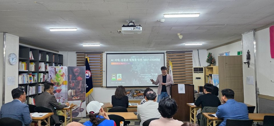 지난 4월 30일 저녁에 비지트의 전상훈 박사는 경주시 평생교육사협회에서 APEC 개최 기념 2025년 계속 교육 1차(1회기) 강연을 진행했는데요, 주제는 'AI(디지털)시대 성공과 행복을 위한 Self-Change' 로 평생교육사 선생님들의 AI활용과 미래브랜딩 전략에 대해서 강연을 진행했습니다.