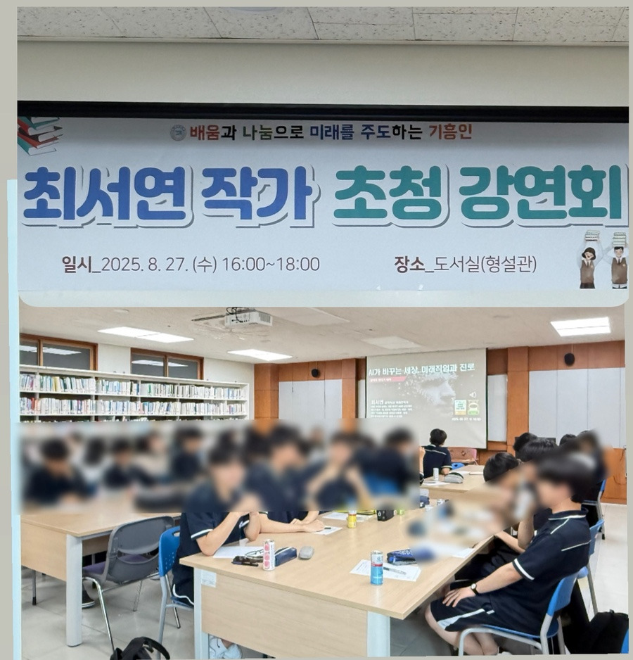 지난 주 최서연 박사는 기흥고 고등학생을 대상으로 하는 초청 강연을 진행했습니다. 이 강연은 2024년에 요청되었던 특강으로 오랜 기다림 끝에 드디어 그 만남이 이루어졌습니다. 40명의 학생들이 빼곡이 앉아서 졸음도 없이 2시간을 함께 했던 이번 강연에서 최서연 박사는 AI 시대으 미래 직업과 진로에 대해 아이들이 알아야 할 다양한 이야기를 전했습니다.