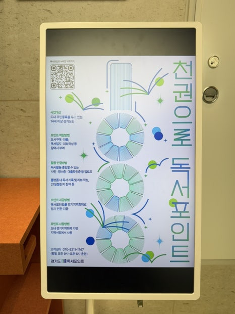 3층은 인문 라운지 AI 가 시작되고 경기책길 A 가 시작되는 첫 층으로 독서에 관심이 많은 분들은 3층부터 찾으시면 될거 같습니다. 사회과학, 역사 분야 등 전문서적이 전시되어 있고 나선형 계단으로 올라가는 측면의 경기책길에는 청소년, 도서여행, 예술 분야 등의 도서가 전시되어 있어 올라가다 책을 읽을 수 있는 공간도 마련되어 있습니다. 천권 프로젝트를 하고 있음을 알 수 있는 이벤트도 있었습니다.