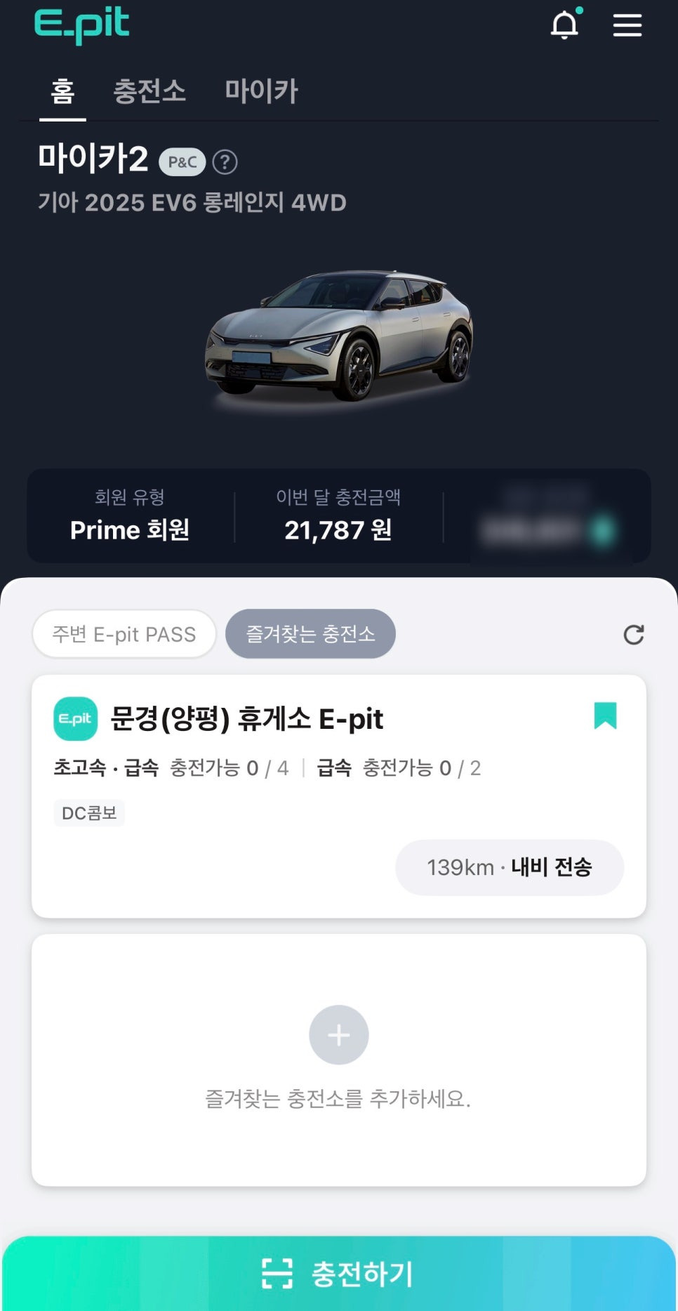 비지트는 쉐보레 볼트를 8년 정도 운행하다가 기아의 EV 6를 추가로 운행하면서 SK 일렉링크 외에 E-pit 을 이용하고 있습니다. 워터도 잘 이용하고 있고요. 기아자동차 멤버십 포인트를 사용할 수 있는 몇 안 되는 충전소가 E-pit 이라 종종 이용을 합니다. 이핏 가입 방법은 구글 플레이나 애플 앱스토어에서 E-pit을 다운로드해 설치하신 후 순서에 따라 가입하시고 가입 카드와 차량 정보 등록하면 완료가 됩니다.