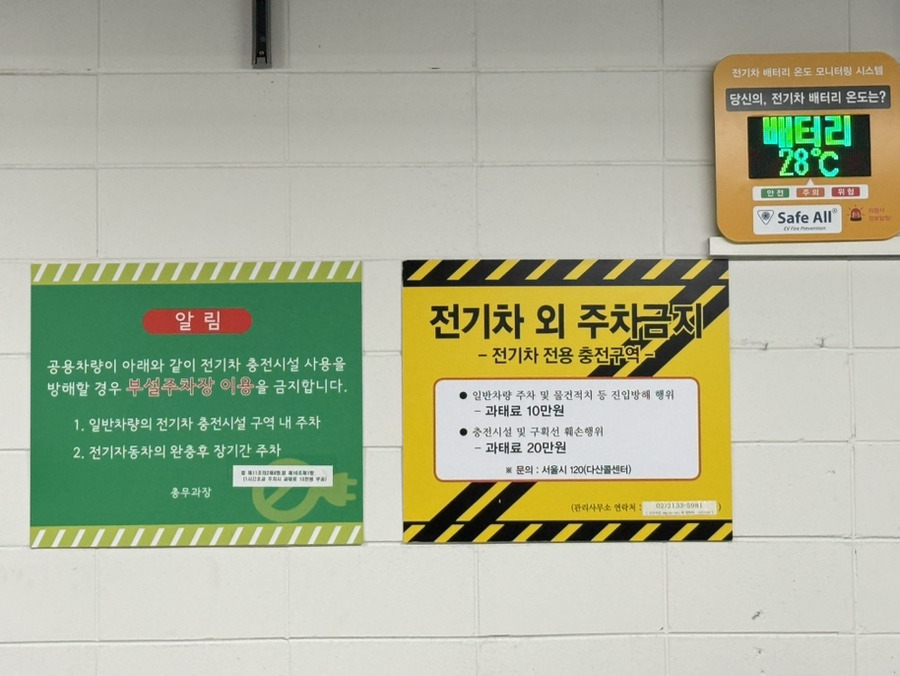 서울시청 주차장 전기차 충전소, 바닥면에 보이는 배터리 온도 센서