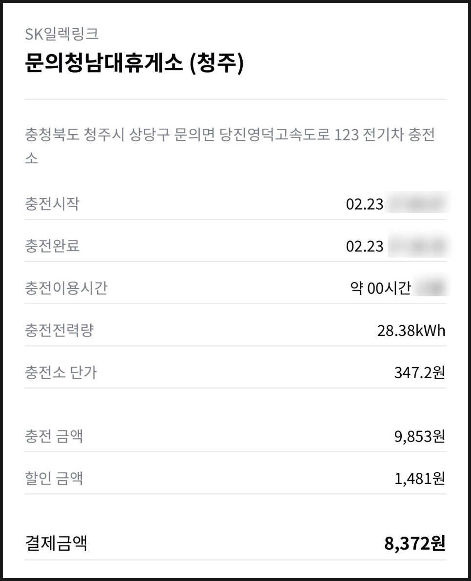 sk 일렉링크 전기차 충전비