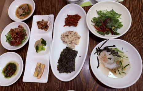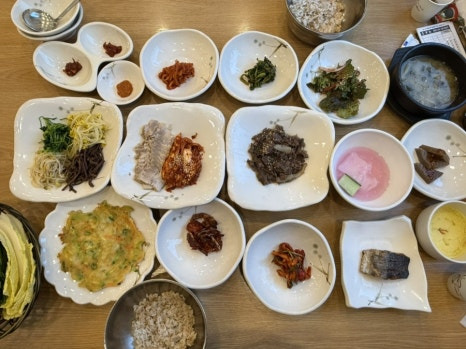 제미나이 추천으로 가게 된 보리밥 전문점 벽오동입니다. 15천원에 보리밥 정식이 정도인가 할 정도로 푸짐했어요. 맛갈나는 나물 반찬과 찌짐과 찌게, 그리고 보쌈과 불고기였어요. 보쌈과 불고기는 리필이 안되었는데요, 개인적으로는 불고기는 좀 별로였어요. 다음에 오면 불고기 대신 보쌈을 더 달라고 해야 할거 같아요. 가성비가 넘 좋은 음식점이었네요. 단, 보쌈이나 불고기를 추가할 경우는 보리밥 정식 가격과 같은 15천원이지만 양은 많으니 참고하세요.